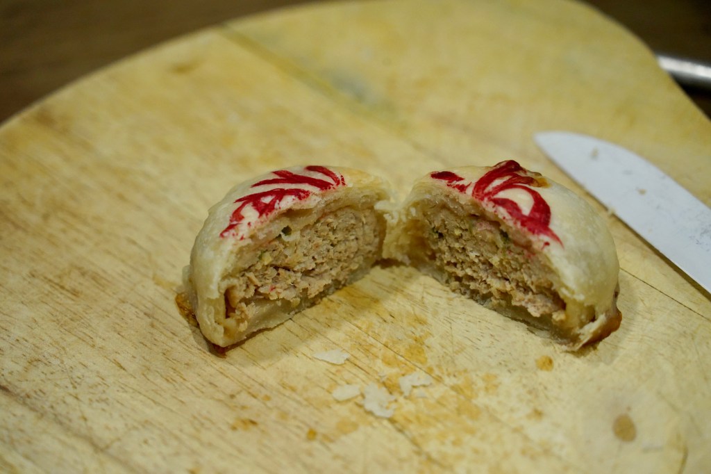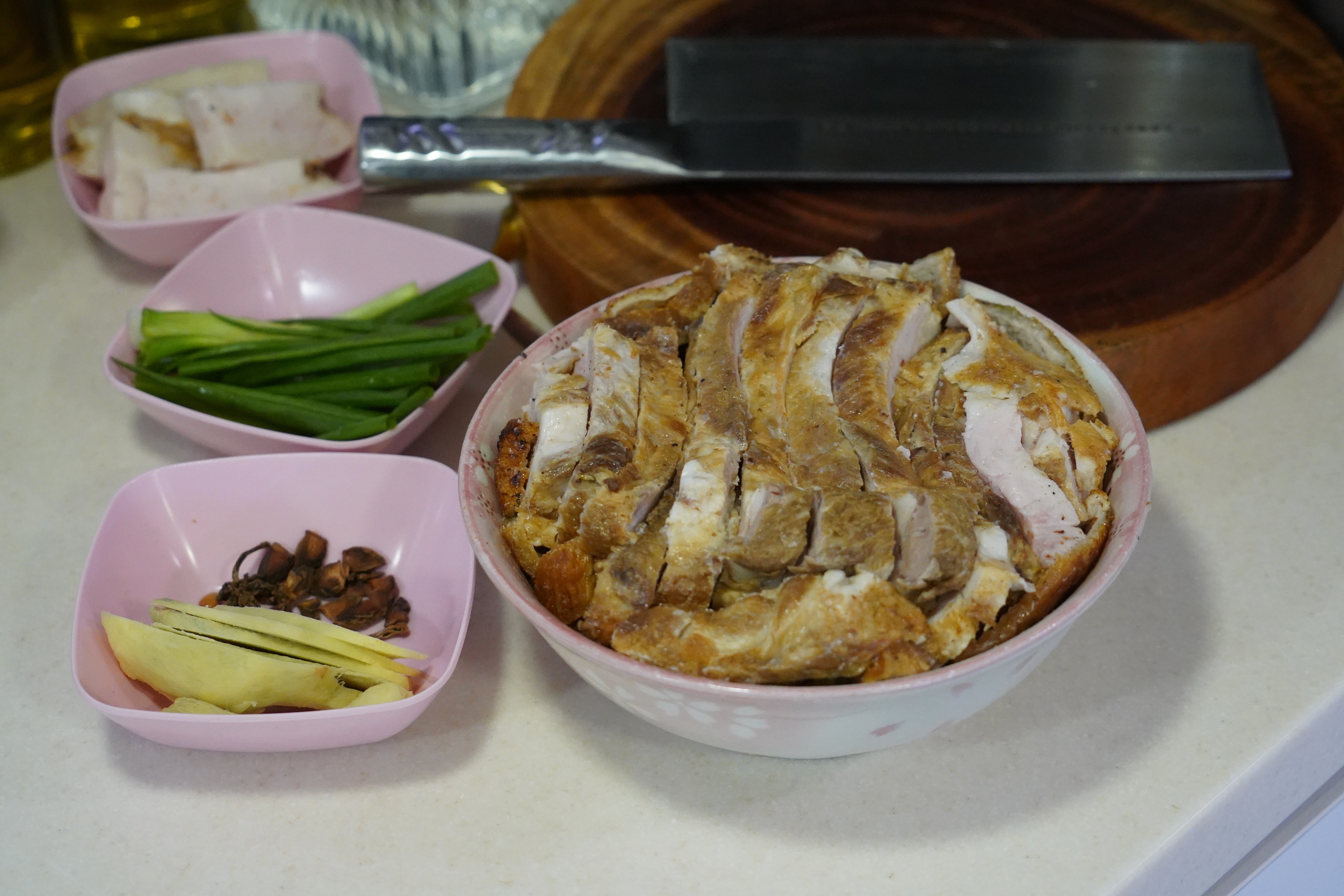 備好幾塊雞胸,取出雞柳。雞柳裹上保鮮紙,用擂棍或小的平底鍋細力搥開成一塊肉片。雞胸𠝹個洞,釀進牛油、蒜蓉和蕃茜碎,再以雞柳片舖蓋。重複沾上麵粉、蛋、鹽和麵包糠,然後輕輕捏實,放雪櫃一會。冷了,取出放熱油耐心炸熟。切開雞肉,香油流出。