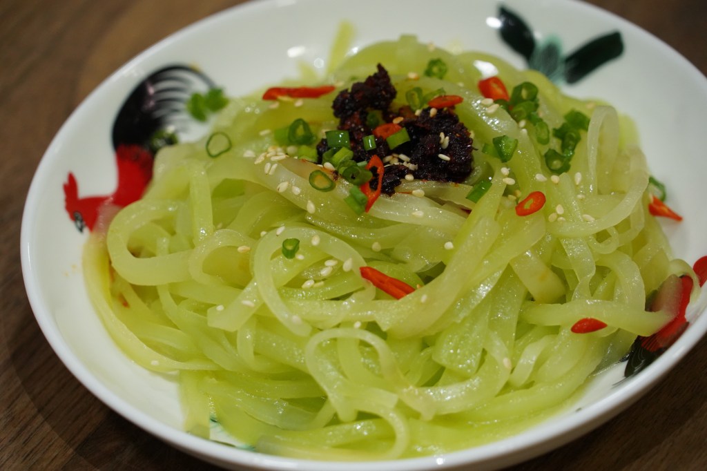 一餐,解凍冰櫃裡的野生薺菜,也是配花菇鮮肉,下年糕炒,落湯和太雕㨮香,已是簡單美味。萵筍當造,一棵切成粗絲,下鹽醃刻間脫水,捏乾後涼拌芝麻油蔥油花椒油、一羹老干媽。筍葉不丟,打開一罐豆豉鯪魚,下糖吊鮮炒起,好吃有益過油麥菜。